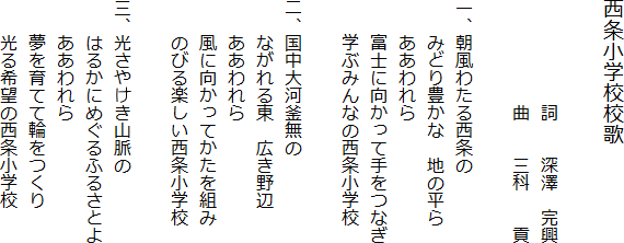| 昭和59年 3月27日 | 西条小学校竣工落成式挙行 |
